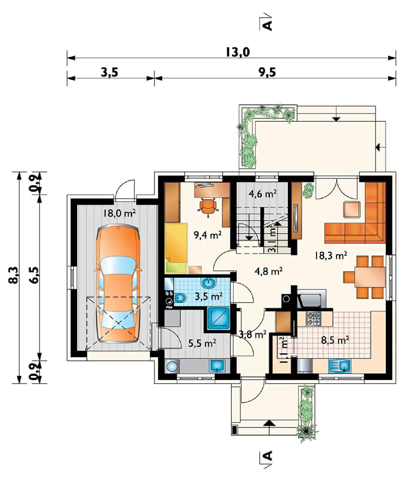 • Размеры: 13.0x8.3 м