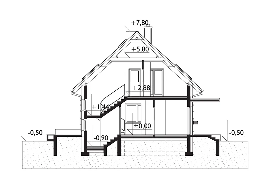 Проект дома Sambor Neo, наряду с Sambor Bobo, является самым маленьким в семействе этих домов без подвалов и пригодных для использования чердаков (90-124 м²). Это наиболее экономичная группа проектов Archeton. Все они спроектированы по простейшей, энергоэффективной прямоугольной планировке. Первый этаж разделен несущими стенами на жилую зону с открытой планировкой гостиной, зону для связи с прихожей и комнату с ванной и котельной. Планировка, включающая полноценную квартиру на первом этаже, упрощает поэтапное строительство, а относительно большая котельная обеспечивает гибкость в выборе способа отопления. Комфортабельная приватная зона для четырех человек с большой ванной комнатой занимает пространство под крутой двускатной крышей без мансардных окон. Проект дома Sambor Neo является вторым в семействе (после гораздо большего Sambor Mobil), в котором предусмотрены пристроенный гараж и чердак. Он также отличается самой современной формой передней части крыши, выполненной в виде плоской плиты на колонне. Сдержанные детали и гладкие фасады без балконов определяют лаконичность и элегантность архитектуры этого скромного, но очень функционального дома.