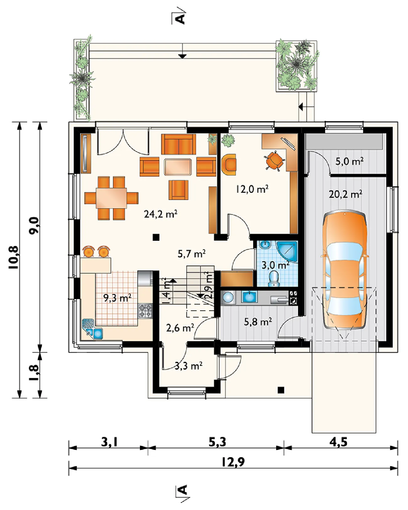 • Размеры: 12.9x10.8 м