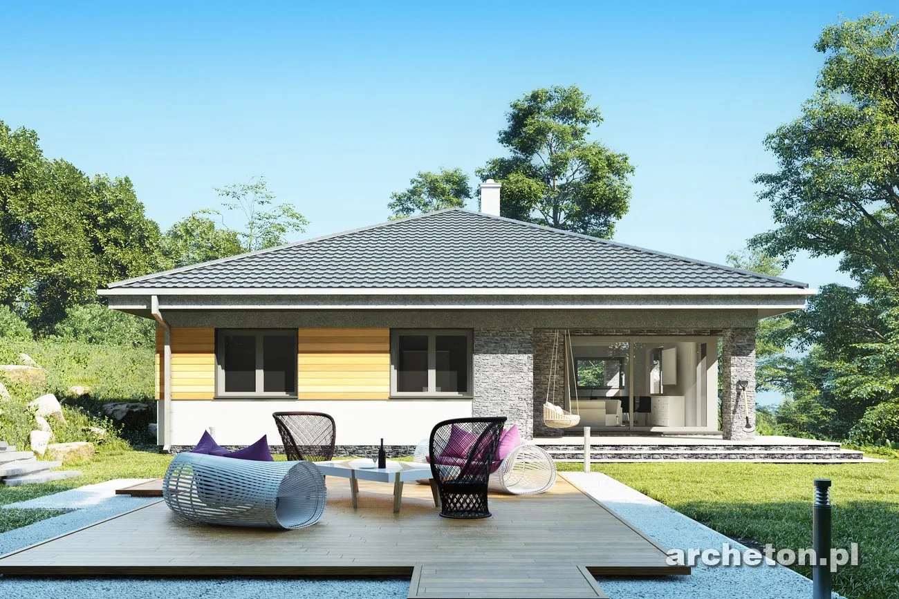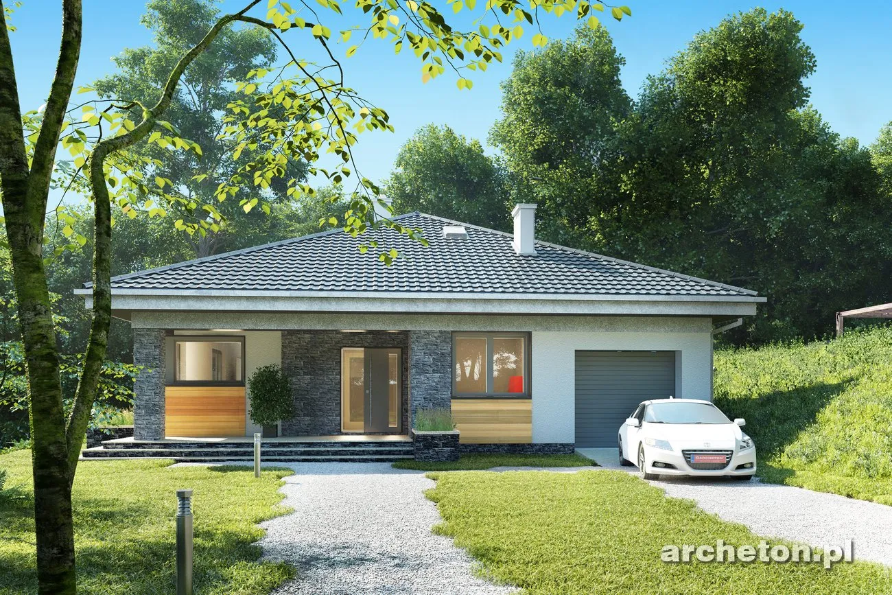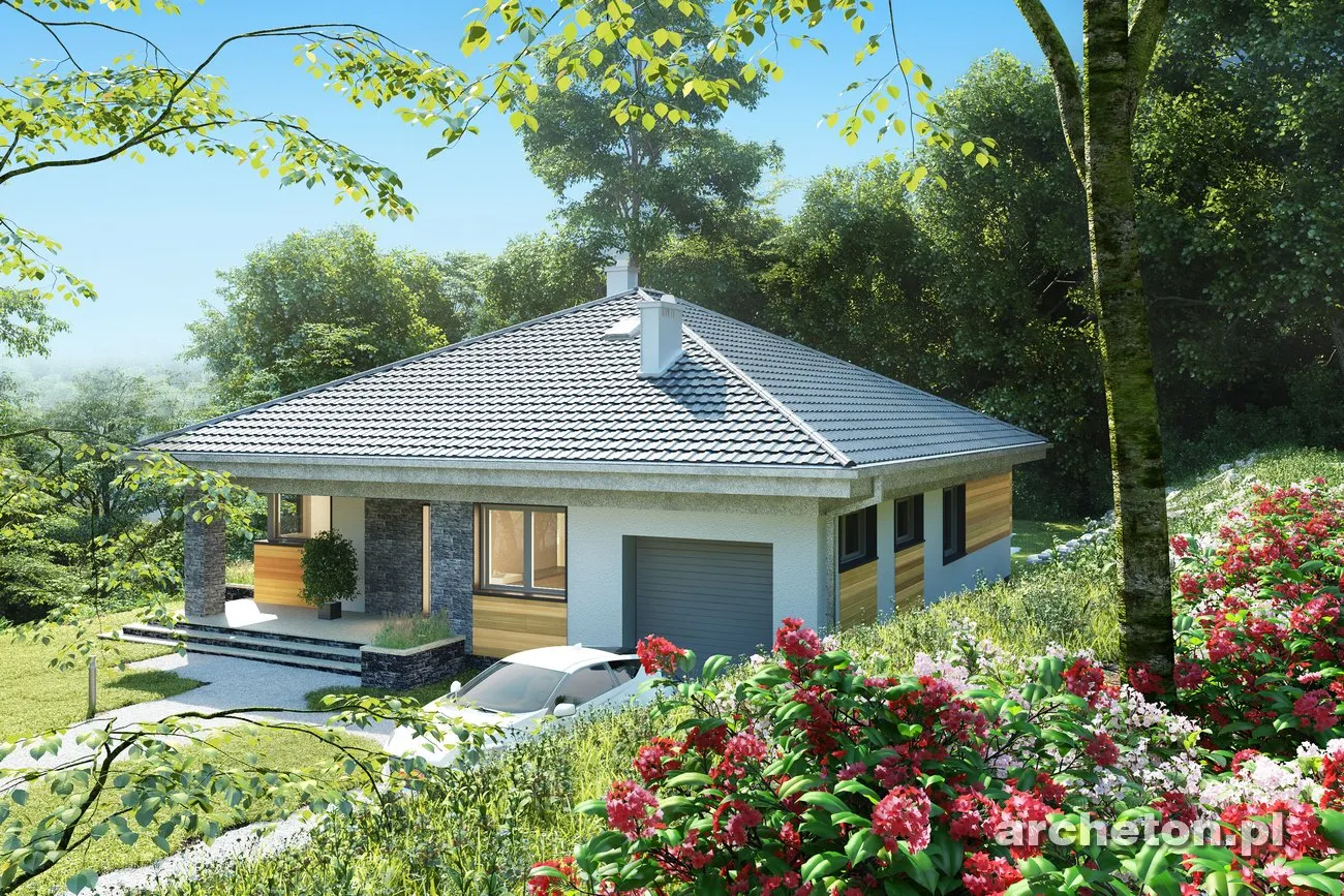Описание проекта Blanka Практически квадратная планировка и вальмовая крыша возможны только на определенных участках. Меньший по размеру дом «Бланка», выполненный в более компактном стиле, пополняет ряды нетрадиционных, новых для Польши одноэтажных домов, таких как «Ксения» , «Братек» и «Кароль». В передней части дома расположена большая котельная с прачечной, удобно доступная из коридора и соединяющая квартиру с гаражом. Открытая планировка жилой зоны, состоящая из кухни с кладовой и просторной гостиной, простирается от входа до сада. В здании заметное место занимают угловые террасы на опорах. Их глубина может регулироваться для создания более просторных комнат или более защищенных от солнца и дождя террас. Центральная часть дома «Бланка» отведена под гардеробную и гостевой санузел. Далее расположены три спальни на четыре человека, каждая с большой ванной комнатой. Современность дизайна дома «Бланка» подчеркивается угловыми окнами и большими раздвижными окнами в гостиной, позволяющими летом интегрировать сад в семейное и общественное пространство.