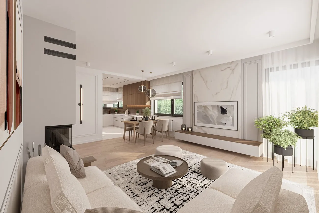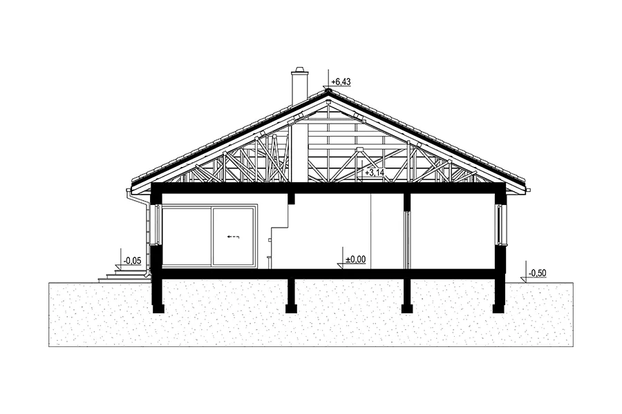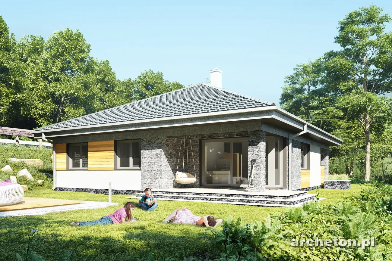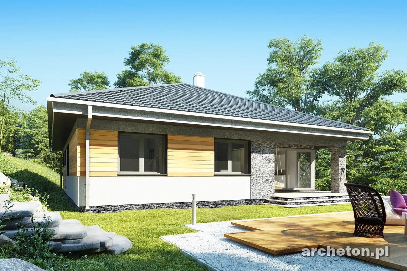 Описание проекта Blanka Практически квадратная планировка и вальмовая крыша возможны только на определенных участках. Меньший по размеру дом «Бланка», выполненный в более компактном стиле, пополняет ряды нетрадиционных, новых для Польши одноэтажных домов, таких как «Ксения» , «Братек» и «Кароль». В передней части дома расположена большая котельная с прачечной, удобно доступная из коридора и соединяющая квартиру с гаражом. Открытая планировка жилой зоны, состоящая из кухни с кладовой и просторной гостиной, простирается от входа до сада. В здании заметное место занимают угловые террасы на опорах. Их глубина может регулироваться для создания более просторных комнат или более защищенных от солнца и дождя террас. Центральная часть дома «Бланка» отведена под гардеробную и гостевой санузел. Далее расположены три спальни на четыре человека, каждая с большой ванной комнатой. Современность дизайна дома «Бланка» подчеркивается угловыми окнами и большими раздвижными окнами в гостиной, позволяющими летом интегрировать сад в семейное и общественное пространство.
