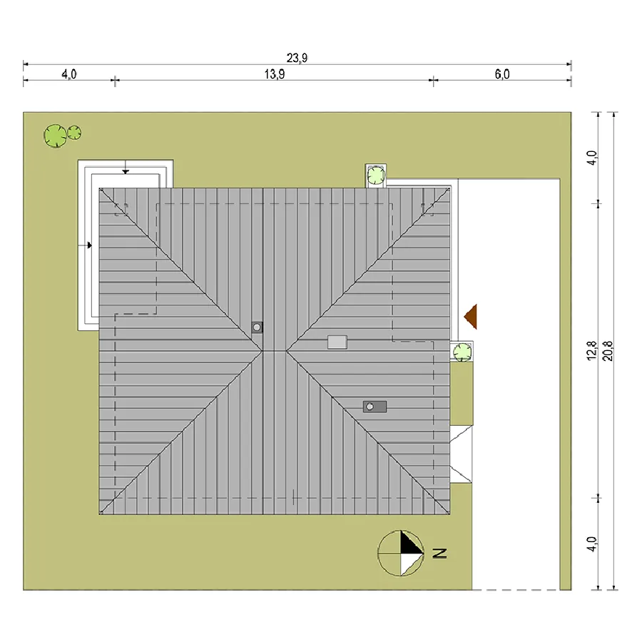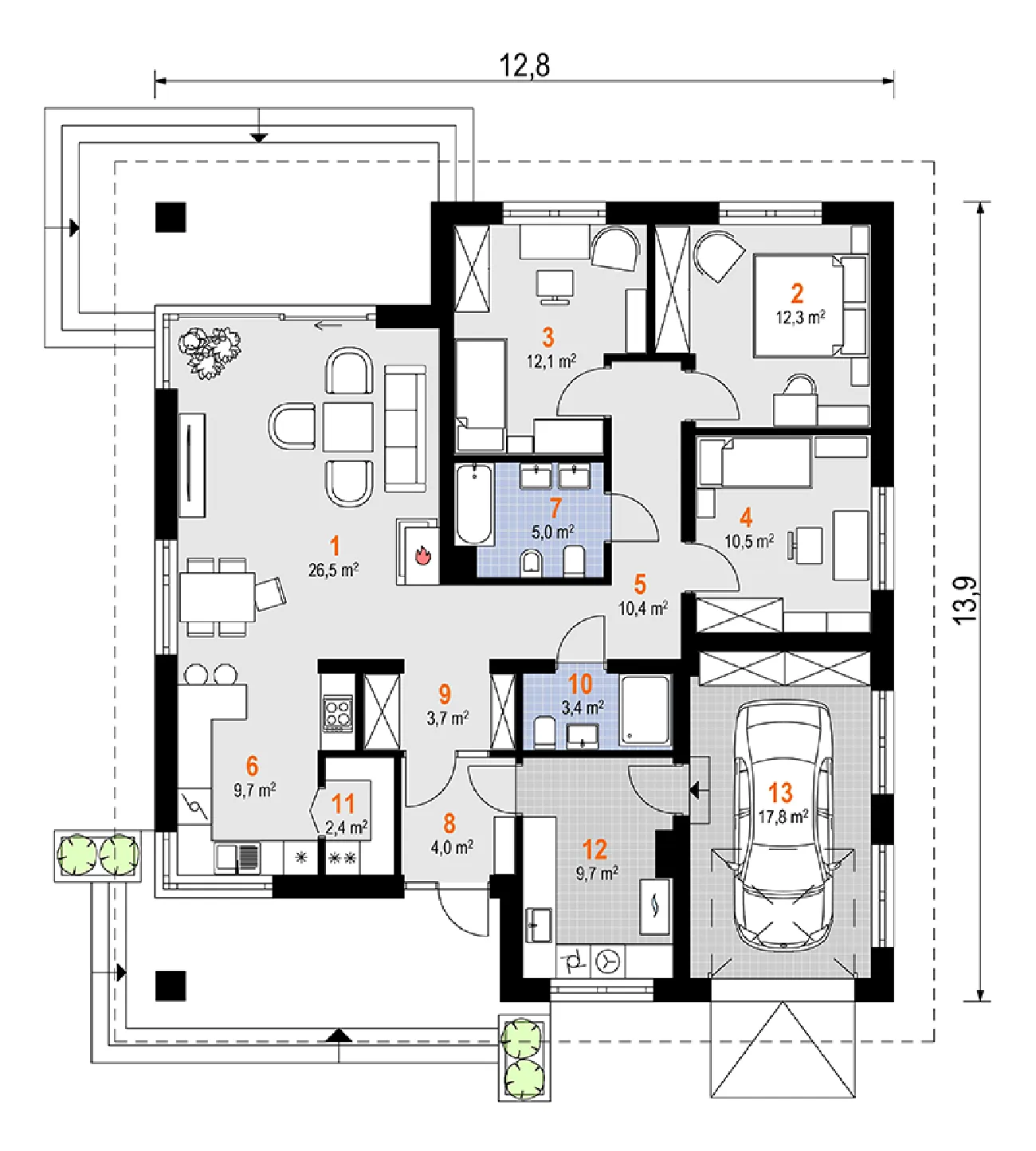 • Размеры: 12.8x13.9 м