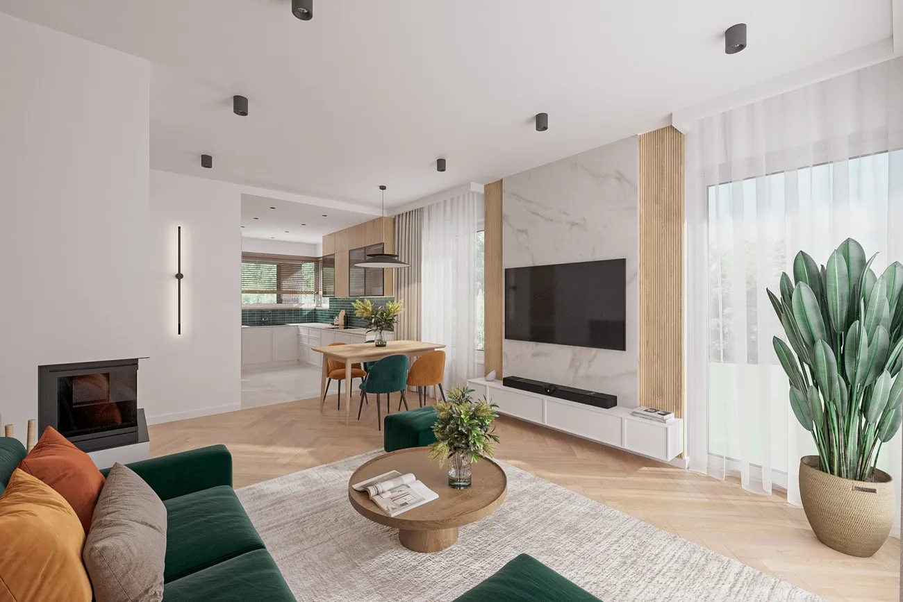 Проекты семьи Бланка предлагают одноэтажный дом с приблизительно квадратной планировкой и вальмовой крышей, покрывающей квартиру и внешние ниши, подобно более крупным домам Ксения или Кароль. Проект дома Бланка Бобо имеет пропорционально уменьшенную планировку, с функциональной программой и расположением комнат, заимствованными из более крупного дома Бланка. В передней части привлекает внимание котельная с прачечной, доступная из прихожей, соединяющая квартиру с гаражом. Открытая жилая зона, состоящая из кухни с кладовой и гостиной, простирается от входа до сада. В здание встроены угловые террасы на опорах. Их глубина может регулироваться для увеличения комнат или более надежной защиты от солнца и дождя. Центральная часть планировки отведена под прихожую и гостевой санузел. Далее расположены три спальни на четыре человека, каждая с дополнительной, более просторной ванной комнатой. Современная концепция дизайна дома Бланка, уникальная среди одноэтажных домов с гаражом площадью около 90 квадратных метров, подчеркивается угловыми окнами и большими раздвижными стеклянными дверями в гостиной. Это позволяет летом интегрировать сад в семейное и общественное пространство.