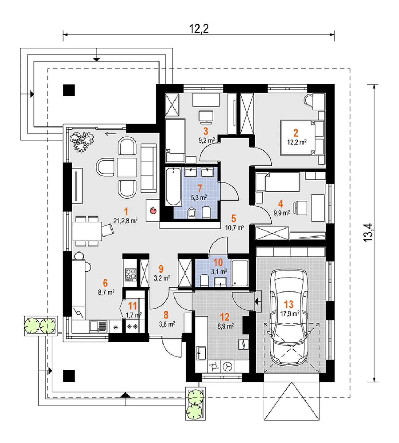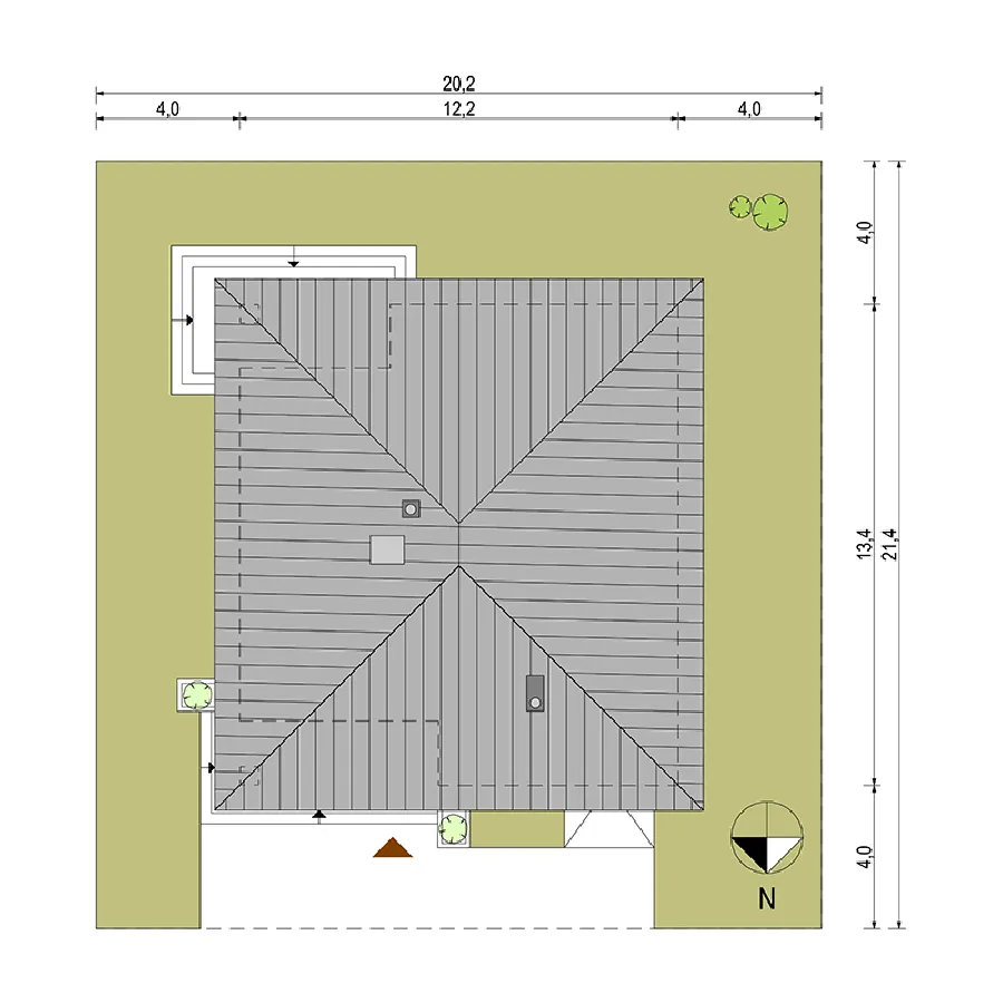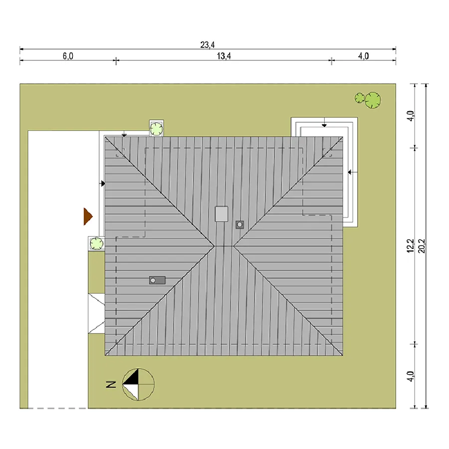 • Размеры: 12.2x13.4 м