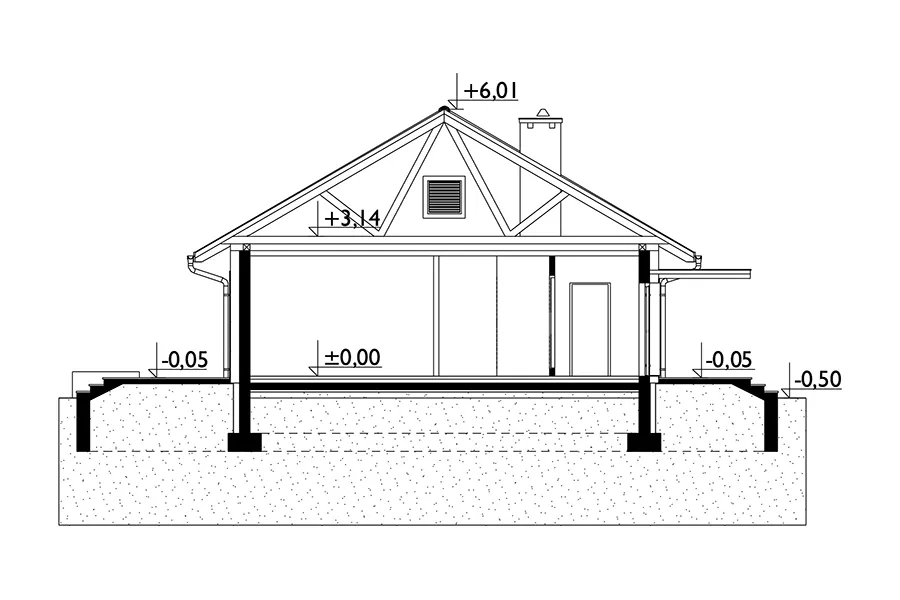 95 м² — это полезная площадь наиболее распространенного одноэтажного дома, обычно включаемая в проекты одноэтажных домов с полезным чердаком. Планировка одноэтажного дома Domino демонстрирует преимущества одноуровневой планировки. Разделение жилых и приватных зон в Domino Rex достигнуто за счет расположения главного входа на одной оси с широким проемом в сад. Создана единая зона: прихожая, гостиная, кухня и, отделенный от нее длинным коридором, комплекс из трех спален с ванной комнатой. Сэкономленное пространство в лестничном пролете позволило спроектировать просторные комнаты и кладовую. Гостиная особенно большая для дома такого размера. После 20 лет тестирования функциональной планировки в нашем портфолио мы включили в этот проект дома геометрические детали, энергоэффективные стены и более крутую крышу. Проверенный, обновленный Domino Rex — это экономичное, современное предложение, которое также напоминает нам, что не все инвесторы планируют включать гараж в дом.