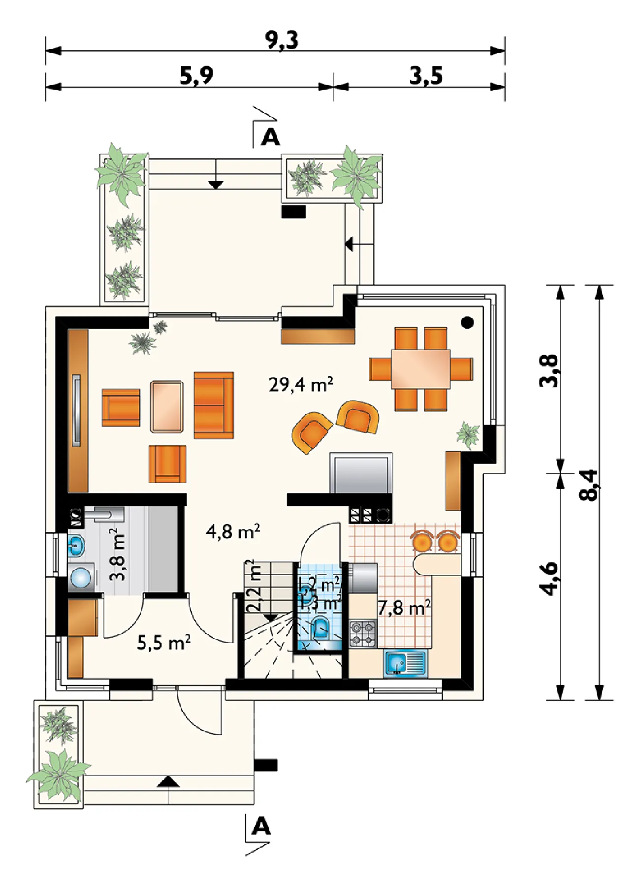 • Размеры: 9.3x8.4 м