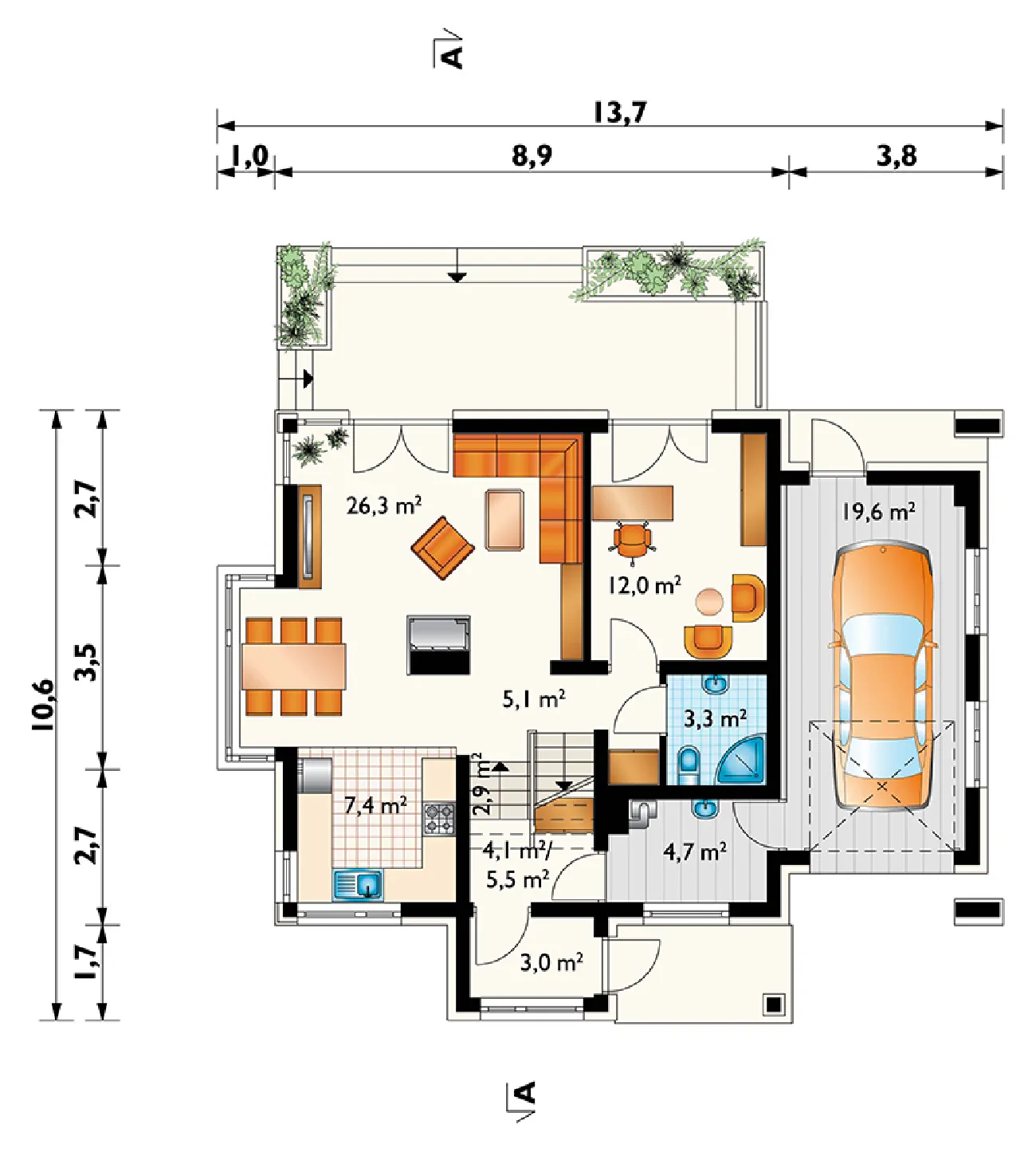• Размеры: 13.7x10.6 м