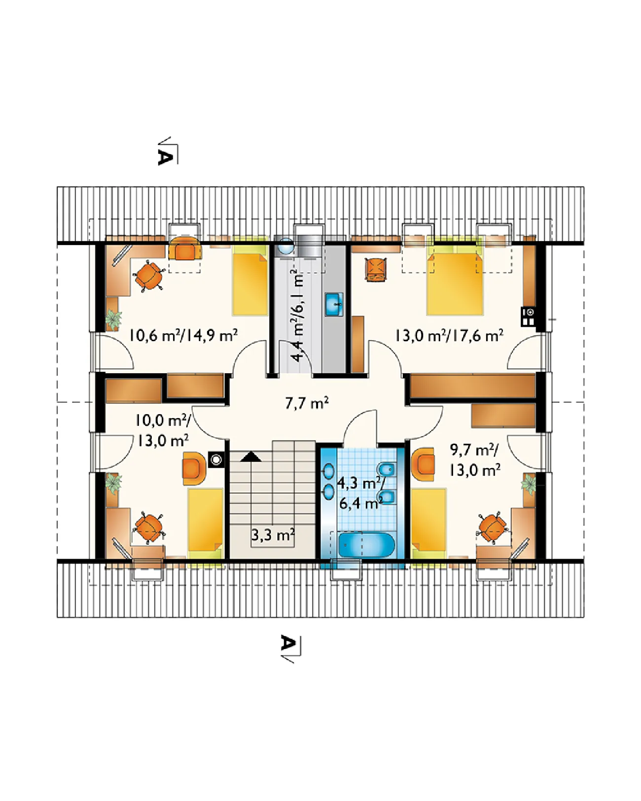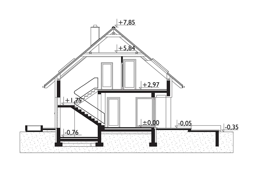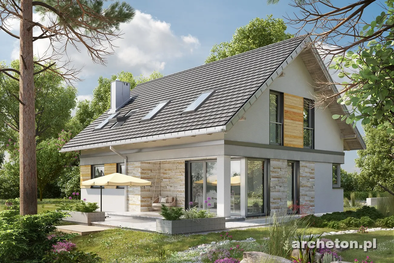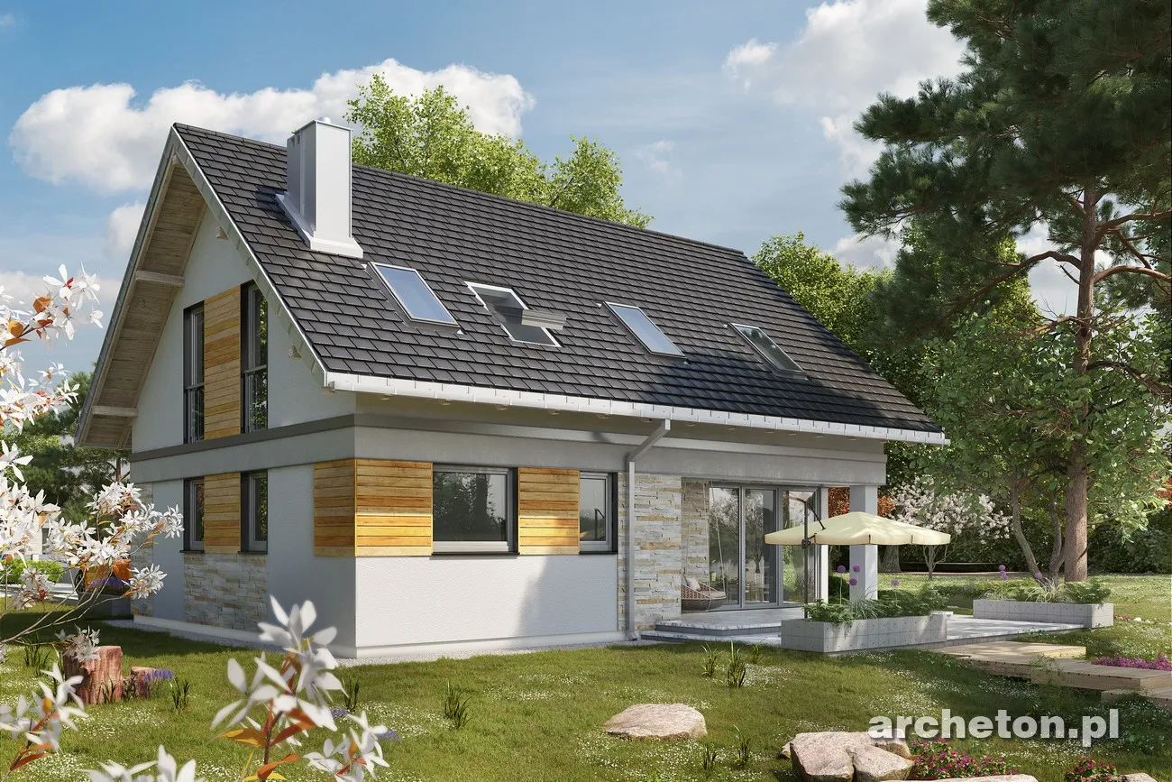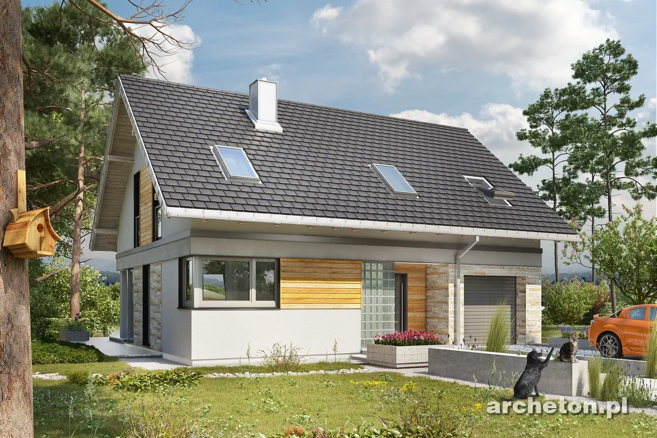 Дома Tola, Zojka Neo и Oberek Rex предлагают схожие функциональные и экономичные проекты с гаражом, занимая при этом одинаковую площадь (примерно 105 м²). Новая модель 2017 года, дом Atos, похожий на описанный выше, отличается еще более энергоэффективным силуэтом и выделяется новыми решениями. Например, предлагается минималистичная гостиная, объединенная с прихожей. Большое угловое остекление визуально расширяет ее, а два выхода в сад позволяют интегрировать открытое пространство в семейную зону отдыха в хорошую погоду. Удаление террасной ниши добавляет к гостиной примерно 5 м². Еще одна новая идея — кладовая под лестницей, удобно доступная непосредственно из кухни. На первом этаже также расположена очень комфортабельная ванная комната, учитывая отсутствие дополнительной комнаты. Проект дома Atos предлагает достаточно места для уединенной ночной зоны благодаря простой и недорогой двускатной крыше без мансардных окон. В доме четыре спальни с просторными встроенными шкафами, большая ванная комната и отдельная прачечная. Деревянная планка, проходящая вдоль фасада на уровне потолка под карнизом, придает минималистской архитектуре необычайную элегантность.