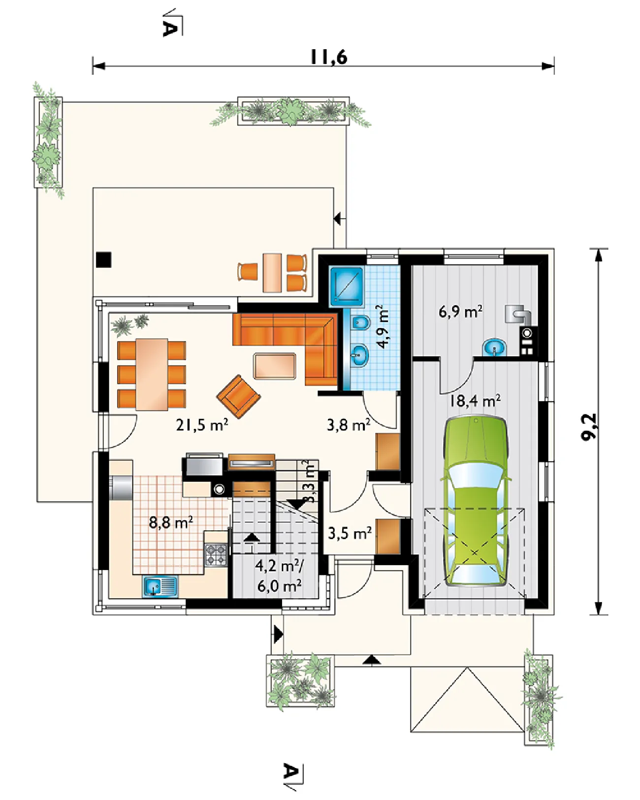 • Размеры: 11.6x9.2 м