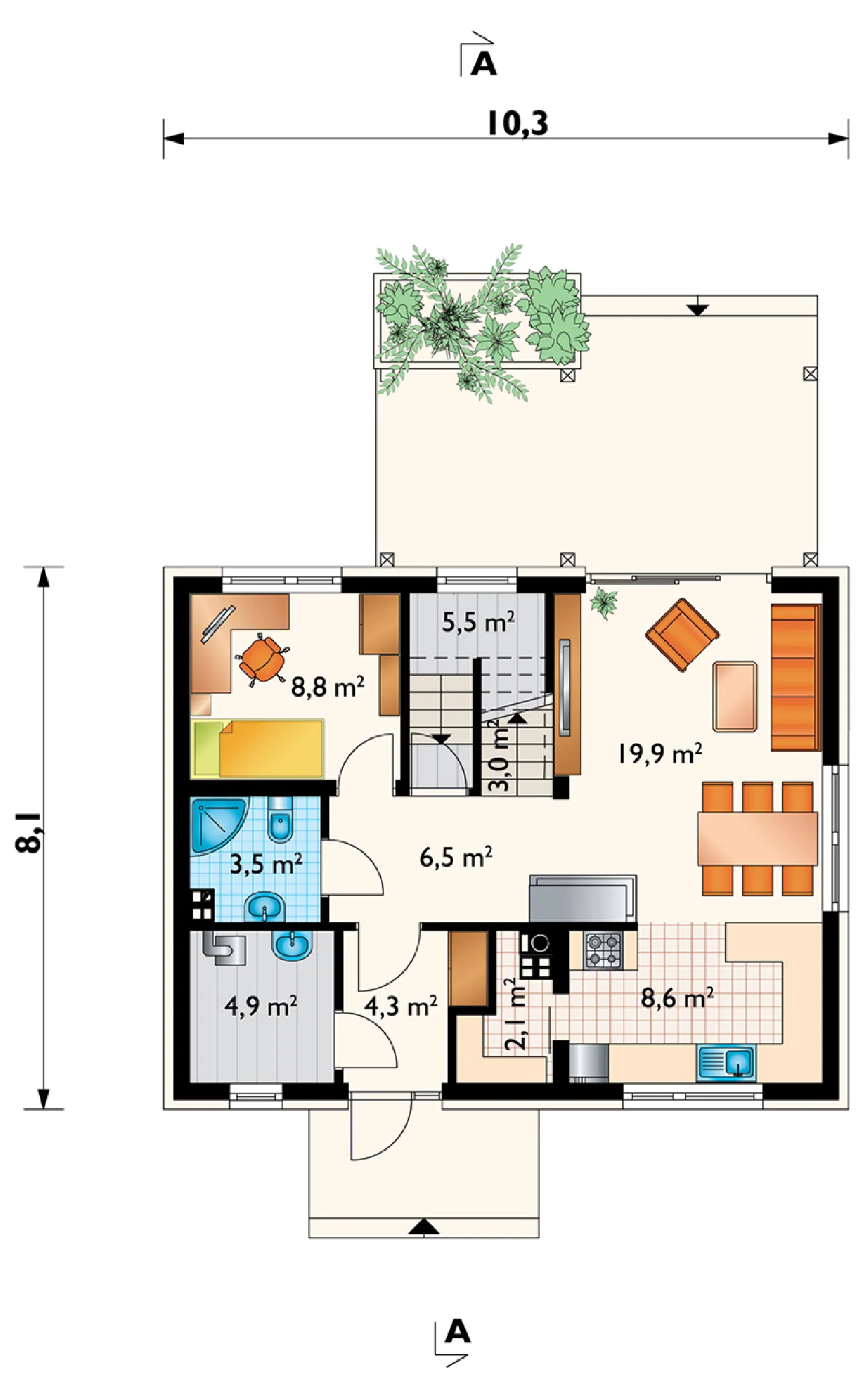 • Размеры: 10.3x8.1 м