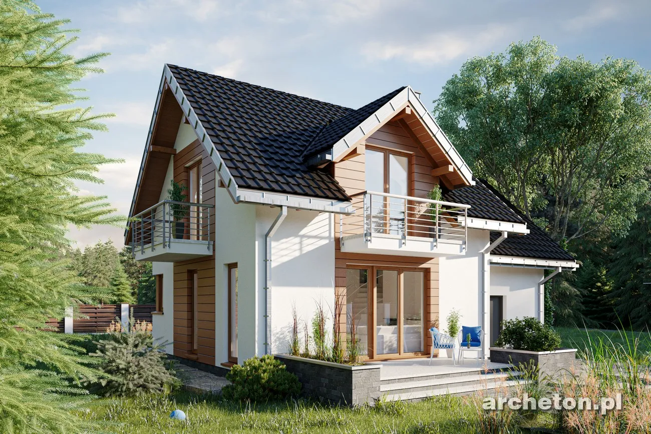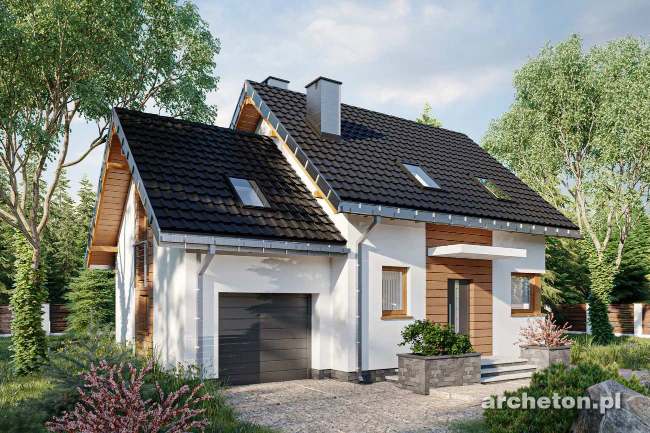 Комфорт в домах с функциональными чердаками и пристроенными гаражами площадью всего 90 м² может быть достигнут только за счет точного зонирования пространства. Компания Archeton предлагает такие решения. Однако бюджеты некоторых инвесторов могут не позволить себе их. Для них мы предлагаем еще более компактный, но идеально продуманный проект дома Romek. Это поистине современное, простое и, прежде всего, изящное здание с двускатными крышами. Для него не требуется место для котельной, поскольку наступила эра конденсационных газовых котлов и тепловых насосов. Один из этих экологичных приборов можно разместить в прачечной, а не в комнате в задней части гаража, что потребует дополнительных инвестиций и строительства дополнительного дымохода. Проект дома Romek предлагает просторную гостиную с кухней на первом этаже, а также три спальни и ванную комнату на чердаке. Теплый поток света проникает в гостиную через тройные балконные двери и угловые окна на кухне. Частично открытая лестница с камином вдохновляет на уникальные решения в организации пространства, являющегося сердцем семейной жизни. Традиционная форма здания разнообразится благодаря современному дизайну фасада.
