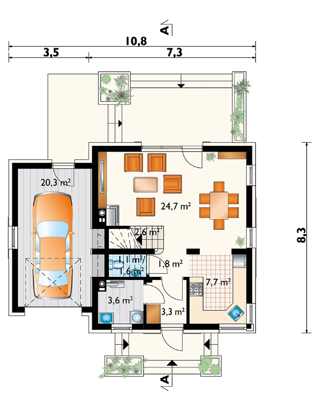 • Размеры: 10.8x8.3 м