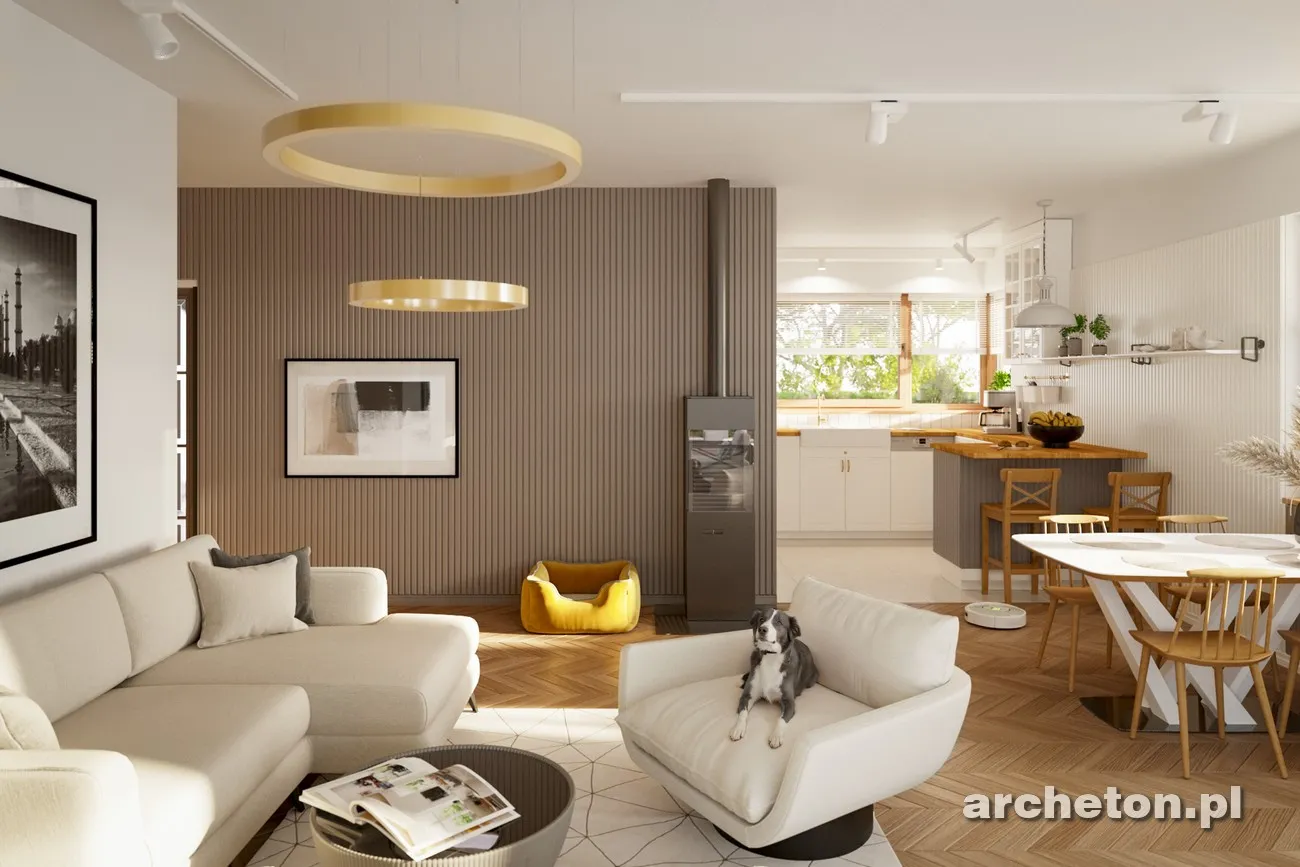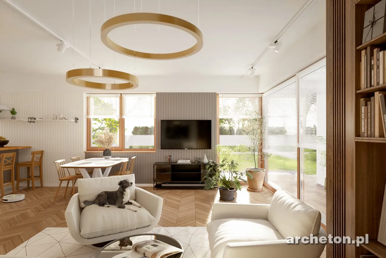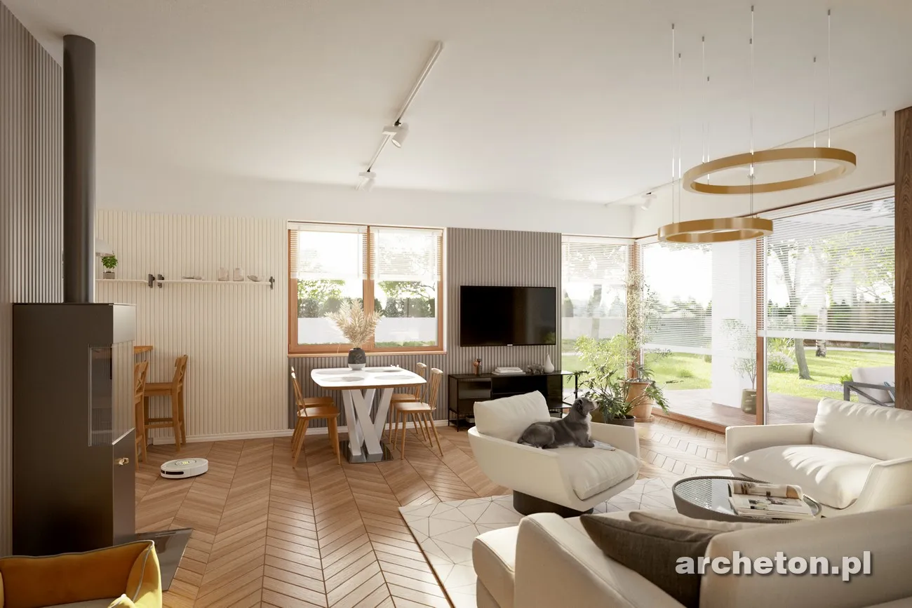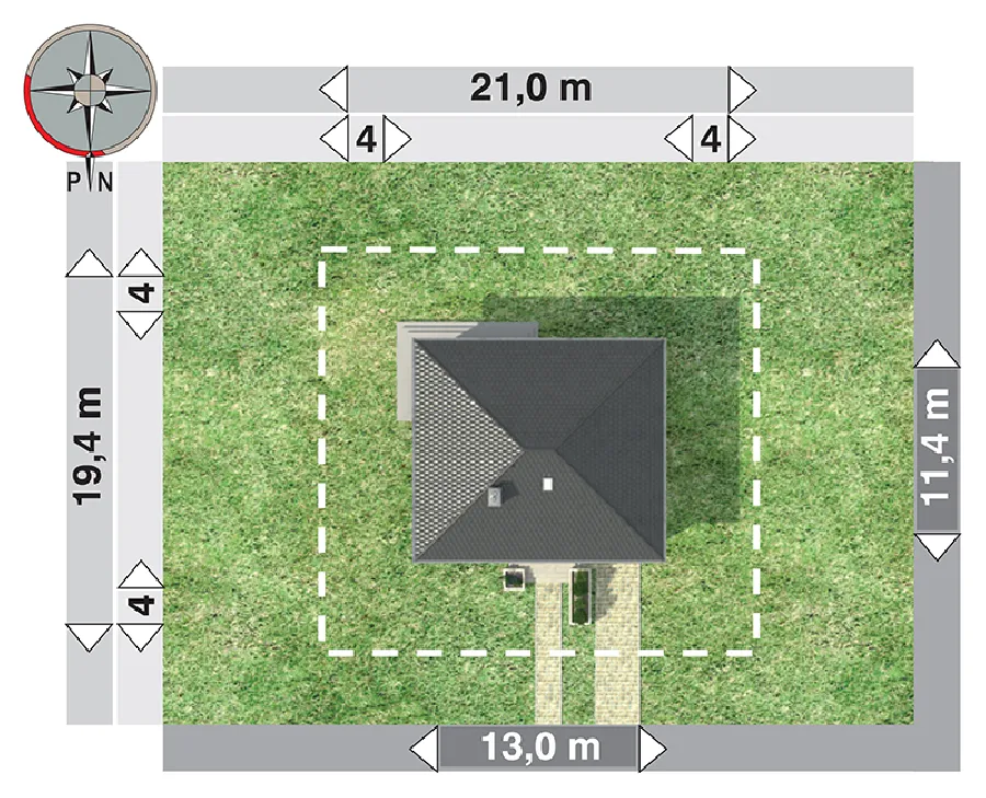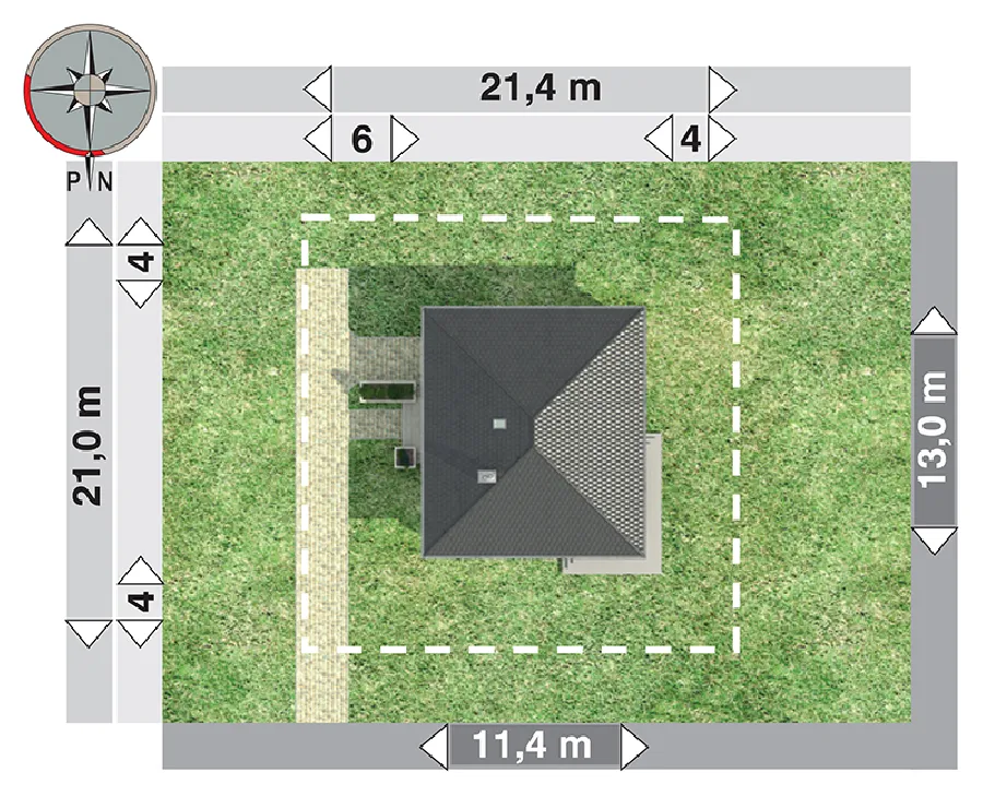 Описание проекта Квадра (1608) - компактный одноэтажный дом без гаража. Проект дома Kwadra был разработан для инвесторов, ищущих комфортабельный одноэтажный дом в более экономичном и компактном варианте, без гаража . Дом площадью 103 м² имеет функциональную четырехкомнатную планировку, сочетающую комфорт и простоту в элегантной конструкции с вальмовой крышей . Что делает проект Квадра уникальным? Представительный характер дома подчеркивается расположенным по центру нишевым входом, а угловое остекление гостиной добавляет легкости и открывает интерьер в сторону сада. Планировка спален использует различную площадь, что обеспечивает дому гибкость и возможность адаптации. Функциональная планировка помещения Интерьер разделен на две зоны, доступ к которым осуществляется из центрального коридора. Слева от входа расположена гостиная открытой планировки, совмещенная с кухней, являющаяся сердцем дома и располагающая к совместному времяпрепровождению. Из холла можно попасть в котельную, где также находятся прачечная и подсобное помещение. В приватной зоне расположены три спальни и две ванные комнаты – главная и дополнительная – что обеспечивает удобство повседневного использования. Меньшая и большая спальни расположены со стороны сада. Уютная передняя спальня находится прямо у входа, что делает ее идеальной для кабинета или уединенной гостевой комнаты. Для кого предназначен проект в Квадре? Проект Kwadra — это предложение для инвесторов, ищущих небольшой одноэтажный дом с простой планировкой и продуманным расположением комнат, наполненный естественным светом. Это идеальный выбор для семей, которые ценят простоту, функциональность и вневременную архитектуру в более компактном исполнении, без гаража .