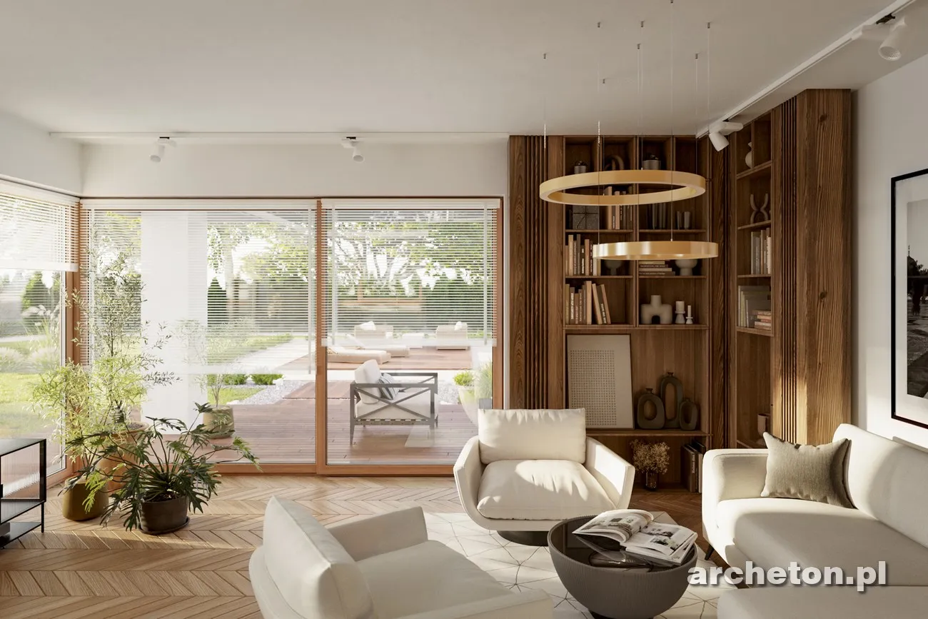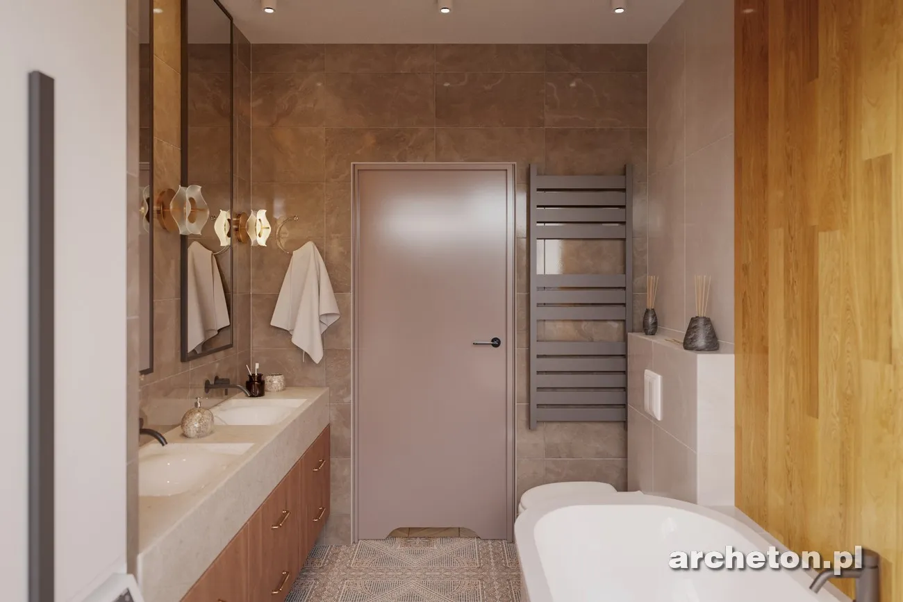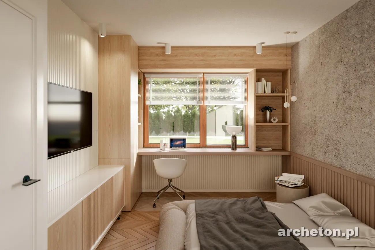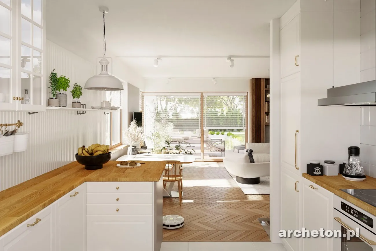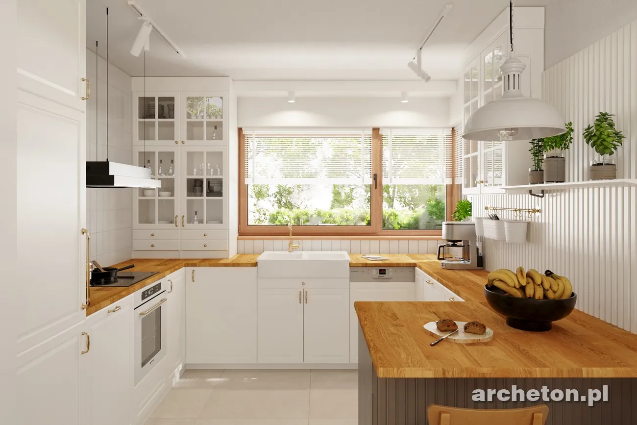 Описание проекта Квадра (1608) - компактный одноэтажный дом без гаража. Проект дома Kwadra был разработан для инвесторов, ищущих комфортабельный одноэтажный дом в более экономичном и компактном варианте, без гаража . Дом площадью 103 м² имеет функциональную четырехкомнатную планировку, сочетающую комфорт и простоту в элегантной конструкции с вальмовой крышей . Что делает проект Квадра уникальным? Представительный характер дома подчеркивается расположенным по центру нишевым входом, а угловое остекление гостиной добавляет легкости и открывает интерьер в сторону сада. Планировка спален использует различную площадь, что обеспечивает дому гибкость и возможность адаптации. Функциональная планировка помещения Интерьер разделен на две зоны, доступ к которым осуществляется из центрального коридора. Слева от входа расположена гостиная открытой планировки, совмещенная с кухней, являющаяся сердцем дома и располагающая к совместному времяпрепровождению. Из холла можно попасть в котельную, где также находятся прачечная и подсобное помещение. В приватной зоне расположены три спальни и две ванные комнаты – главная и дополнительная – что обеспечивает удобство повседневного использования. Меньшая и большая спальни расположены со стороны сада. Уютная передняя спальня находится прямо у входа, что делает ее идеальной для кабинета или уединенной гостевой комнаты. Для кого предназначен проект в Квадре? Проект Kwadra — это предложение для инвесторов, ищущих небольшой одноэтажный дом с простой планировкой и продуманным расположением комнат, наполненный естественным светом. Это идеальный выбор для семей, которые ценят простоту, функциональность и вневременную архитектуру в более компактном исполнении, без гаража .
