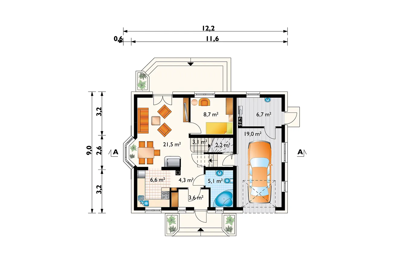 • Размеры: 12.2x9.0 м